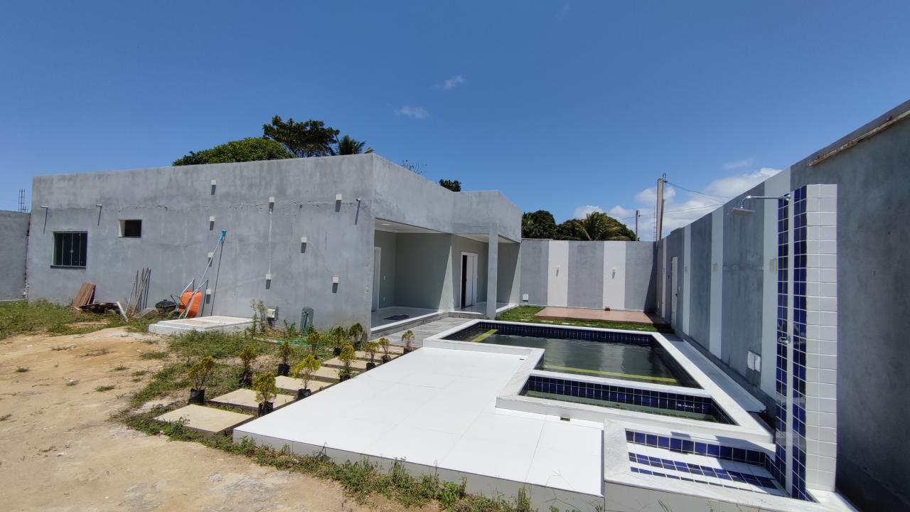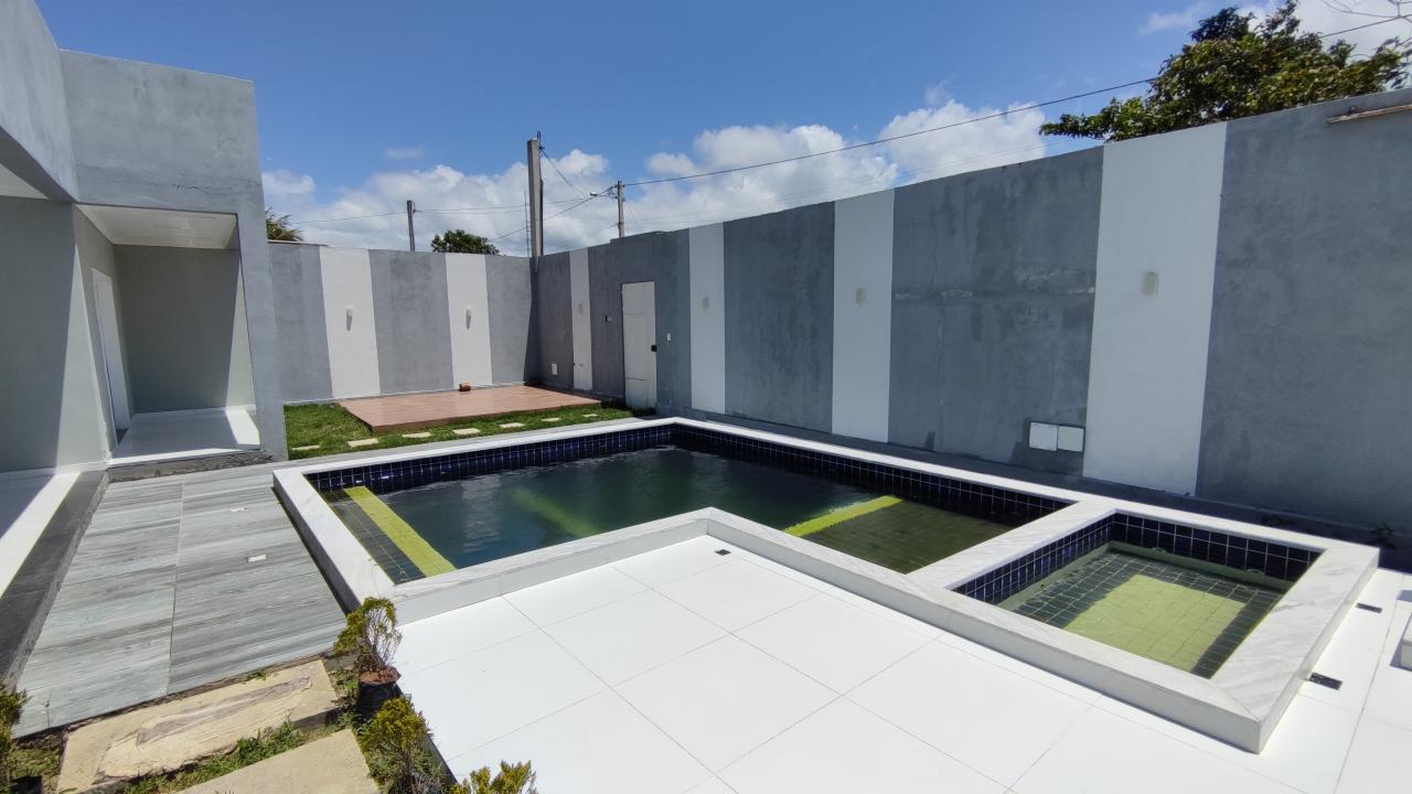 Casa com uma área maravilhosa, terreno de 20x20, 400m² com uma piscina à frente do imóvel. Tem 4/4 sendo uma suíte master, um banheiro social, sala, cozinha com ilha, área de serviço. Cômodos avantajados com material de boa qualidade, toda na lage. Murada com uma altura acima de 2.80. localização: pra quem quer morar ou investir em lugar mais reservado, localização pouco explorada. Fica a 15 minutos das praias e 15 minutos do aeroporto. 5 minutos da BR 367.